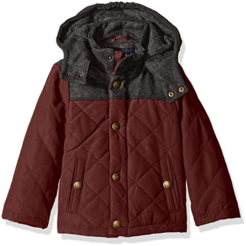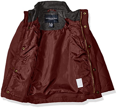 London Fog Little Boys' Toddler Barn Jacket with Faux Wool Hood And Yolk, Burgundy, 3T