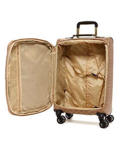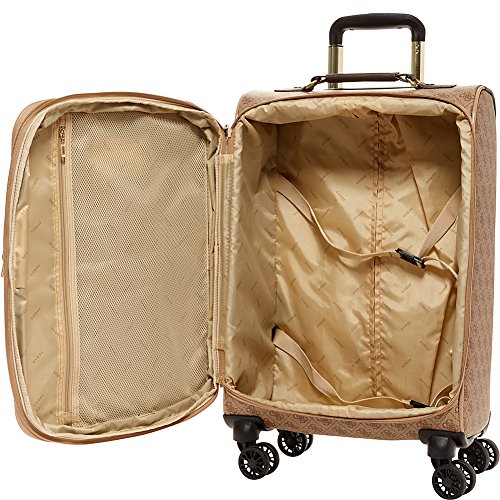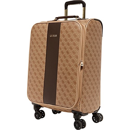 Studio : Guess Luggage Publisher : Guess Luggage Binding : Apparel Product Description GUESS Fashion Travel - Nissana Collection 20" Spinner Upright. Features of this brown bag with gold hardware include 8-wheel design, light weight body construction, expandable zipper compartment for additional packing, multi stop aluminum trolley system, top and side carry handles, interior organization, GUESS jewelry-crafted hardware, fully lined with GUESS logo pattern, GUESS ID Tag, and jewelry inspired zip pullers. Designed in Los Angeles, 5-year limited warranty. 0