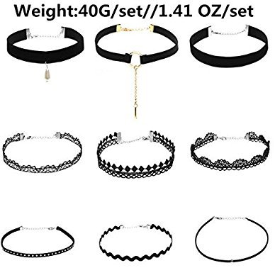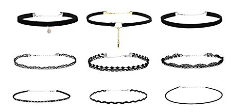 Venusvi Fashion Black Choker Necklace for Women and Girls (pack of 9)