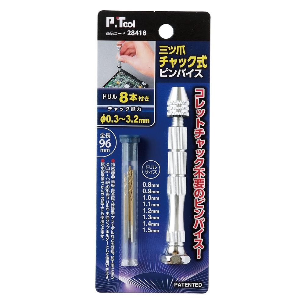 | 仕様 | 三つ爪チャック式 チャック能力:Φ0.3~3.2mm ドリル8本付 |