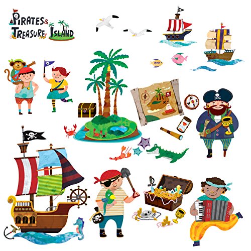 -. Title : Decowall DW-1310 Pirates & Treasure Island Peel and Stick Nursery Kids Wall Decals Stickers