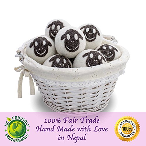 Organic Eco Wool Dryer Balls - 6 Pack - 100% Handmade, Fair Trade, Organic, No Lint - Premium Quality