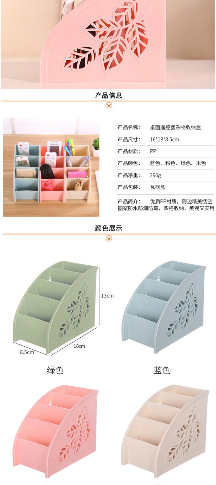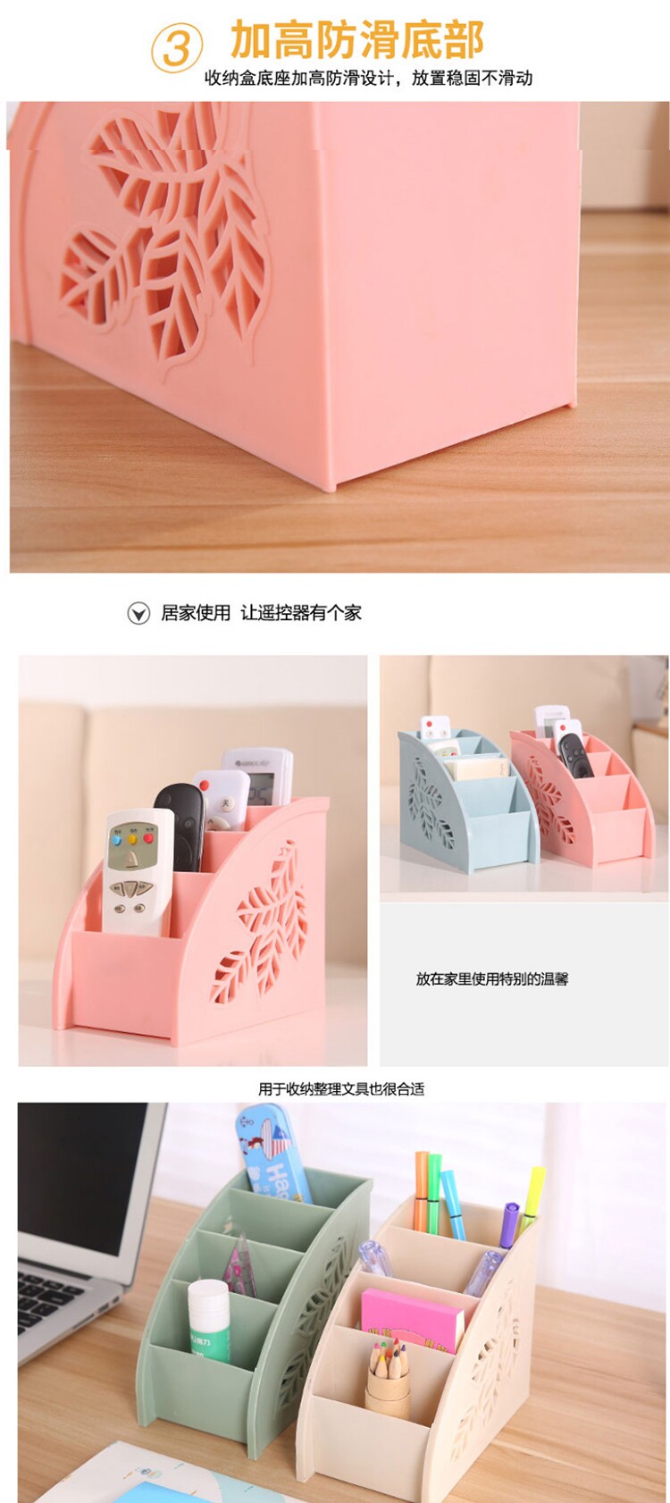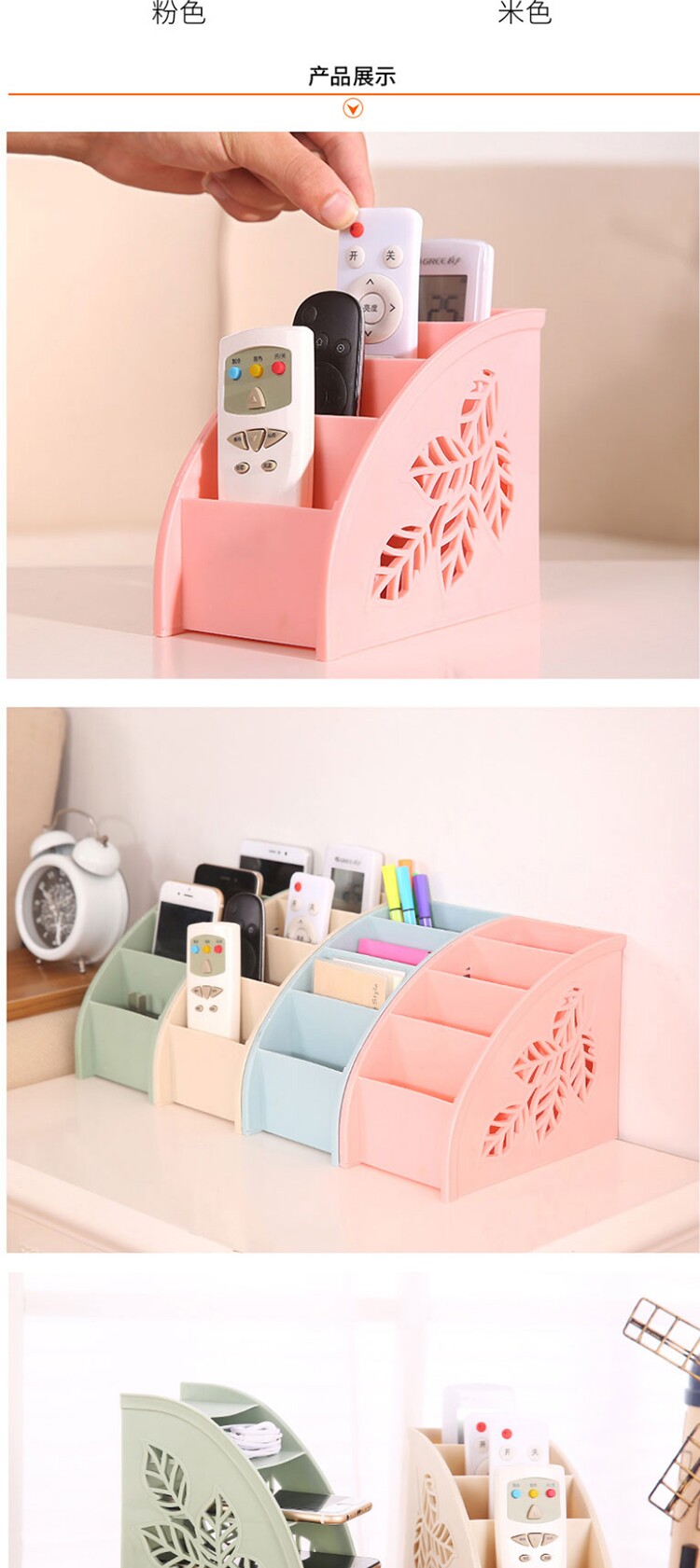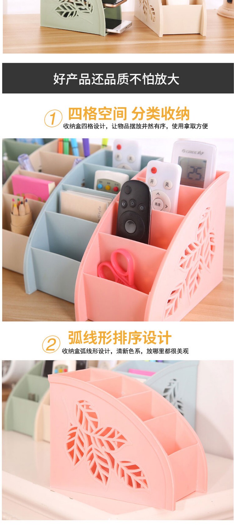 侧面镂空树叶四格遥控器杂物收纳盒