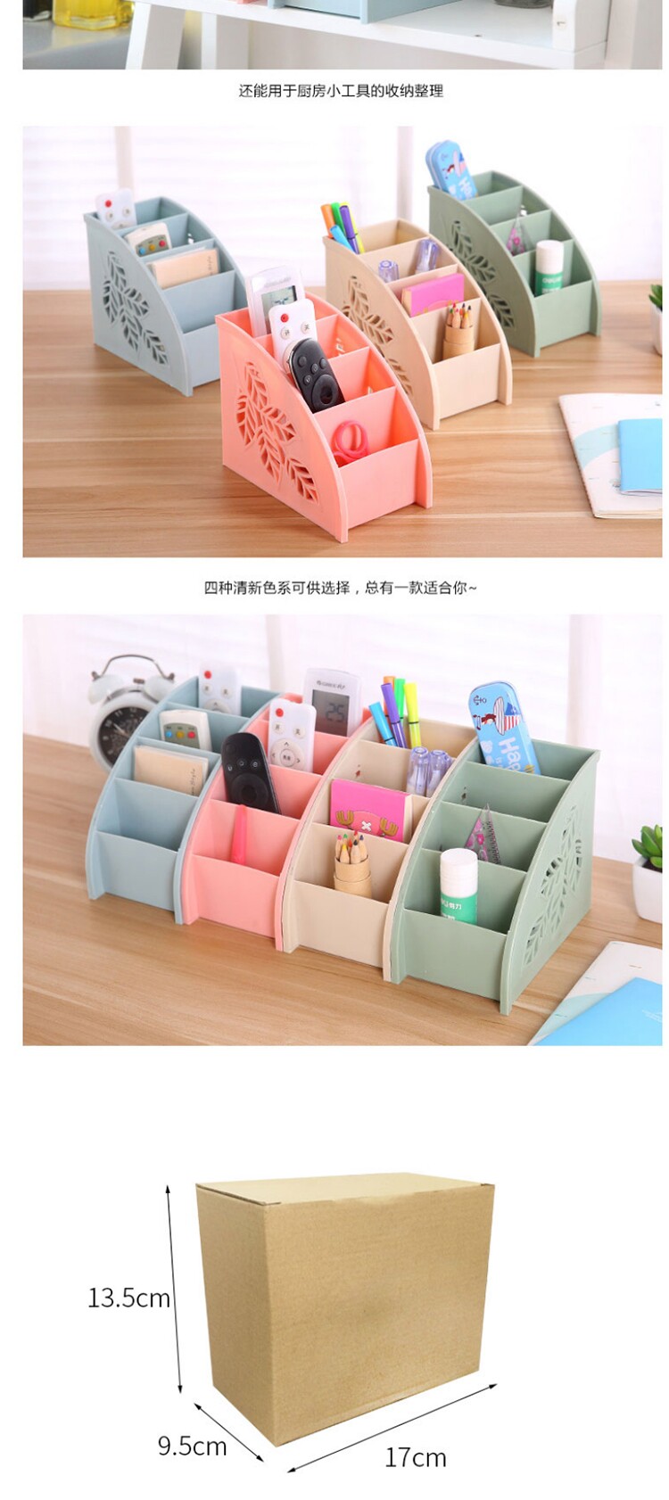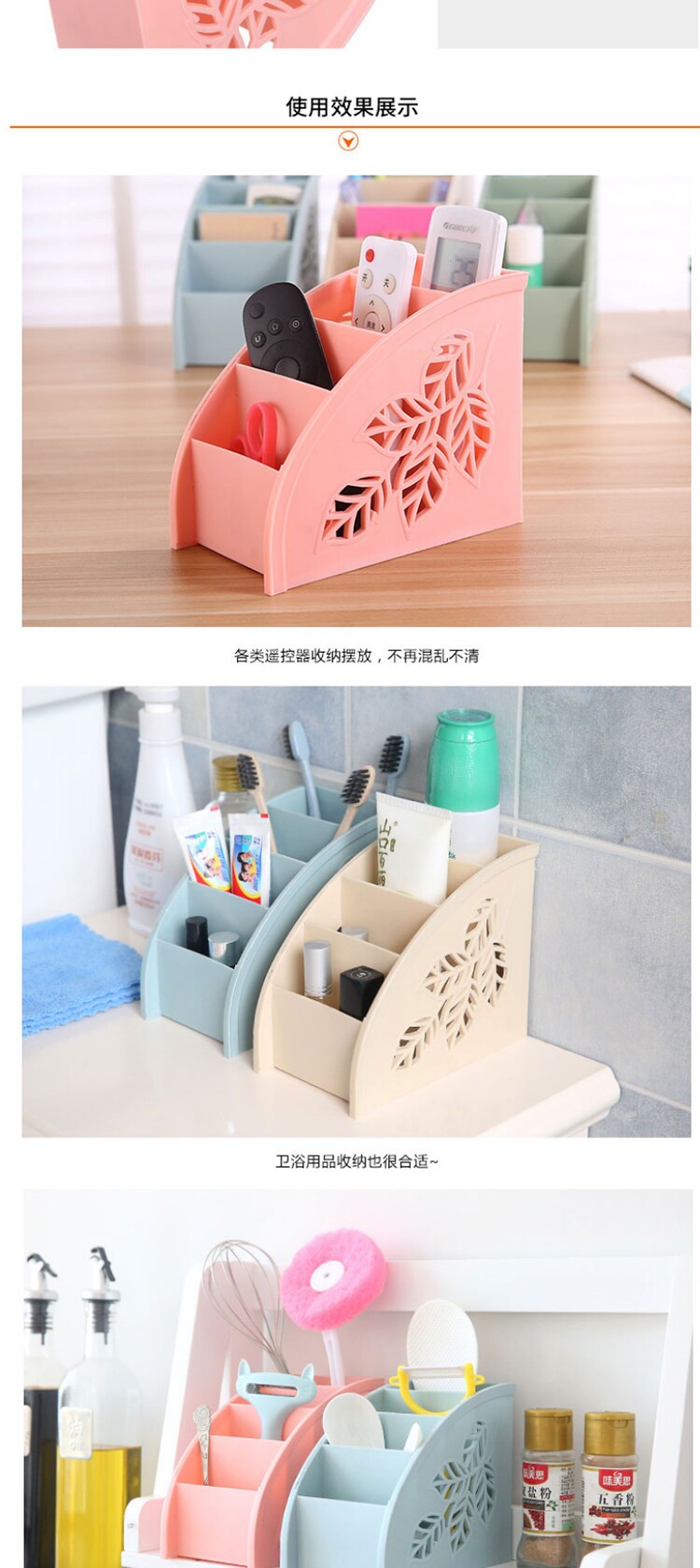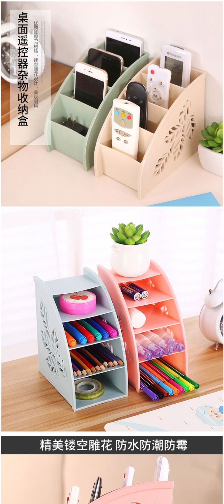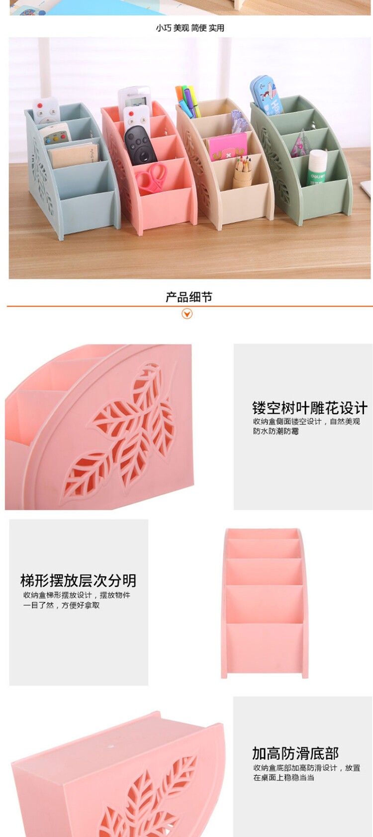 侧面镂空树叶四格遥控器杂物收纳盒