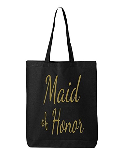 Shop4Ever Maid of Honor Gold Cotton Tote Wedding Reusable Shopping Bag 6 oz Black 1 Pack Eco