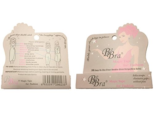 These strips are nearly invisible and are great for hiding bra straps, securing revealing necklines, Hold up strapless tops, Eliminate blouse gaps, Fix herms fast, Close wrap skirts and more
