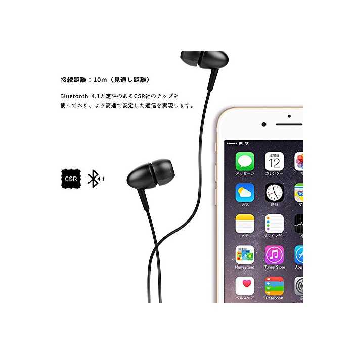 【 노이즈 리덕션 고음질 】 마이크 내장,Bluetooth접속 에서의 통화가 가능합니다.귀의 안쪽까지 무리 없어 수습되어 장착감과 기밀성을 높인 하우징 디자인,음의 출구가 고막에 가까워지는 것으로 다이렉트로 음을 신고하는 롱 포토,CSR팁(칩) 세트 기술 탑재,wireless 이어폰/wireless 헤드폰의 난점인 음의 지연도 적게 억제되고, 보다 자연스러운 고음질을 실현 합니다.귀로 저스트 피트 하는 가나《루》형 밀착 구조에 의해외부의 잡음을 차단해 주는 때문에,음성에 집중 할 수 있는 이어폰입니다.또한특별 대음량으로 없으면,통근,통학,낮잠,공부시에 이용하여도음누락 심장배가 없습니다.목 원래의 조작부에 버튼을 집약하고, 통근 전차내와 같은 스마트 폰 등의 플레이어를 꺼내기 어려운 씬에서도 편리하게 리모콘으로 옵니다.귀에 장착 하지 않는 때는 그대로 넥에 걸이,탈락이나 분실 등 심장배를 하지 않고에 끝나(해결되)습니다.