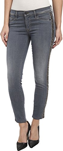 Metallic studs and shiny beads bring a rocker-chic look to the sides of these cropped Hudson jeans. Fading adds lived-in charm. 5-pocket styling. Button closure and zip fly.