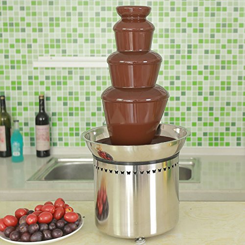 22.8 Inch Commercial Chocolate Fountain for Wedding, Party, Rental business. All parts made by Stainless Steel 27 Inch Commercial Chocolate Fountain for Wedding, Party, Rental business. All parts made by Stainless Steel.Note: To make the melting process faster and to prevent blockage of the fountain, please use chocolate of high percentage of cocoa butter, or you can melt the chocolate first with a microwave oven. Besides, chocolate syrup is also a good choice.