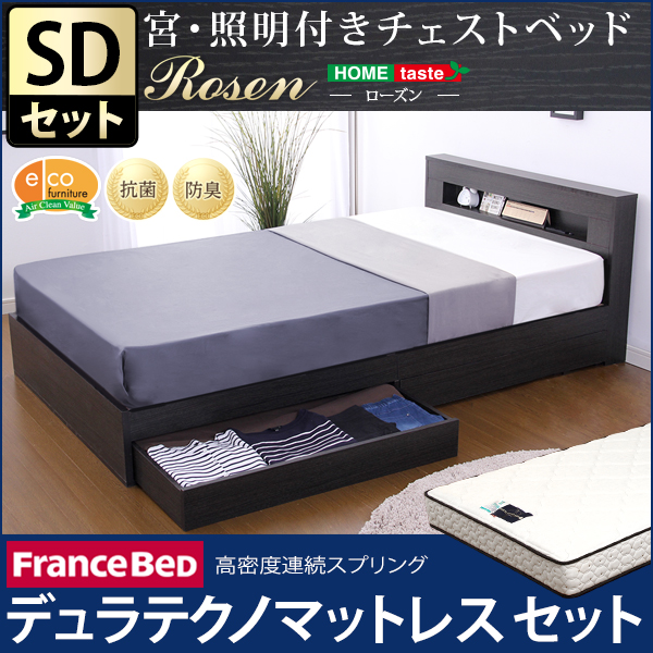 宮、照明付きチェストベッド【ローズン-ROSEN-(セミダブル)】(デュラテクノマットレス付き)