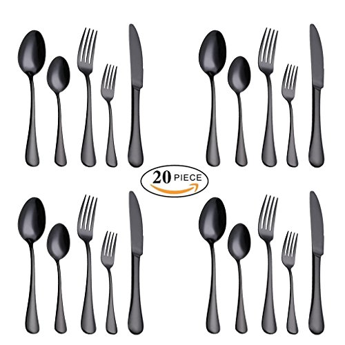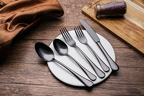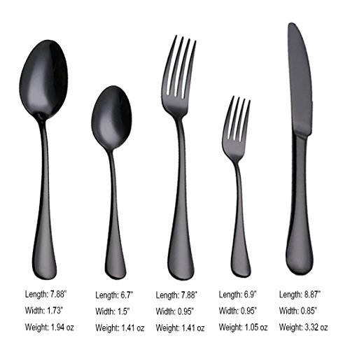 Studio : Onlycooker Publisher : Onlycooker Product Description Product Description: Black, Gold, Rose Gold are the original stainless steel outer vacuum plasma coated with a layer of precious metals, because it is metal, not paint, so no paint chips. Modeling simple, looks did not show off firing skills, but still dazzling beautiful people. Features: Modern well-balanced proportions to seek good touch feeling Stainless steel flatware set with durable high quality to meet daily use Elegant roundedge handle Luxury mirror polish, no need re-polishing Specification: Material: 18/10 high-class stainless steel Process: Mirror Finish, Edge Smoothen Color: Black / Gold / Sliver 20-piece Flatware Set including: 4 x Main Spoon - length: 20 cm/7.88 inches / Weight: 1.94 oz / pcs . 4 x Main Fork - length: 20 cm/7.88 inches / Weight: 1.41 oz / pcs . 4 x Dinner Knife - length: 22.5 cm/8.87 inches / Weight: 3.32 oz / pcs . 4 x Dessert Fork - length: 17.5 cm/6.9 inches / Weight: 1.05 oz / pcs . 4 x Teaspoon - length: 17 cm/6.7 inches / Weight: 1.41 oz / pcs . Washing: 1. Keep your products clean. It can make the material in fresh status. 2. Use clean water to flush it. 3. Wipe it after used . In order to assure durability,please do not use steel wire or hard material to clean this product. If we fail to satisfy you for any reason, please do contact us in time, we promise every customer with 100% fine after-sell service. We've been always trying our best to make it pleasant shopping experiences for everyone of you.
