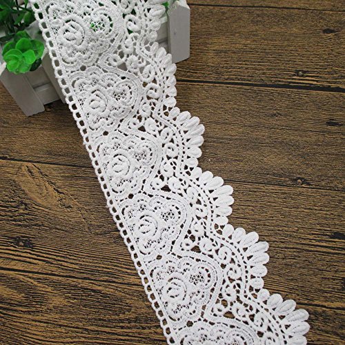 3-1/2 Inches Wide In White Cotton Embroidered Eyelet Lace Trim Ribbon For Garment Home Decor DIY Craft Supply By 5 Yards