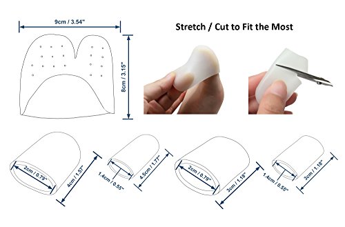 Studio : Meta-U Publisher : Meta-U Binding : Health and Beauty Product Description The metatarsal pad sleeve measures 8 cm (3.15") in width, 9 cm (3.54") in length, 0.5 cm (0.2") in thickest thickness. The large toe cap measures 4 cm (1.57") in length, 2 cm (0.79") in diameter; the small toe cap measures 4.5 cm (1.77") in length, 1.4 cm (0.55") in diameter. The large toe sleeve measures 3 cm (1.18") in length, 2 cm (0.79") in diameter; the small toe sleeve measures 3 cm (1.18") in length, 1.4 cm (0.55") in diameter. The toe cap and sleeve both measure 0.3 cm (0.12") in thickness. 0