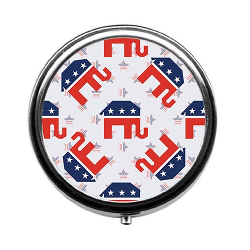 Broken republican elephants pill box/pill case----Round pill box/case--- Three-compartment pill box/pill case