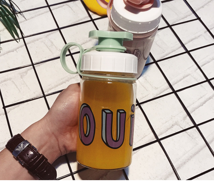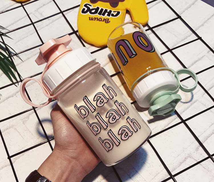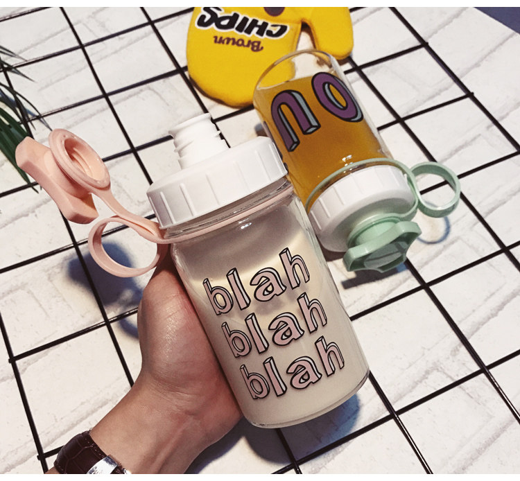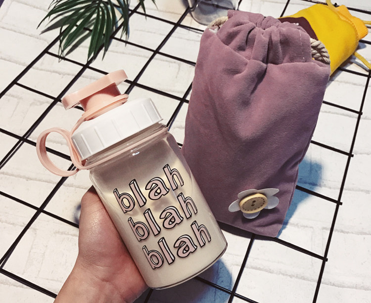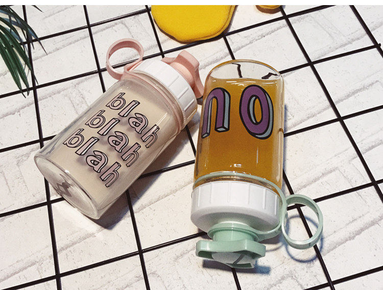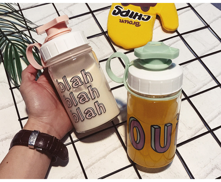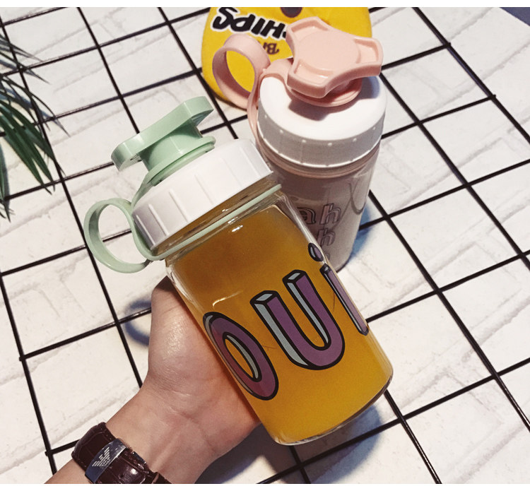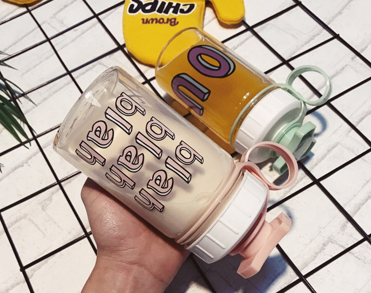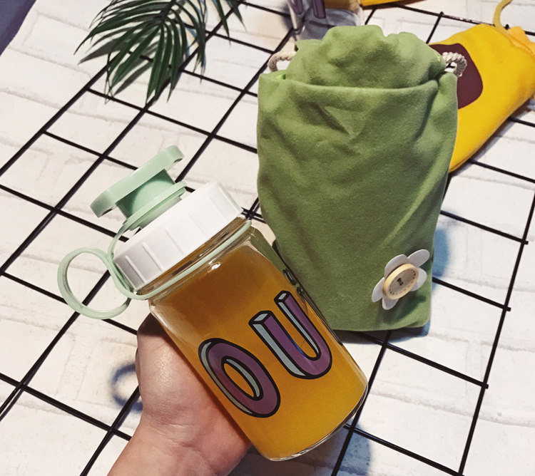 韩国清新可爱玻璃杯创意个性便携杯子韩版女学生水杯奶瓶随手杯