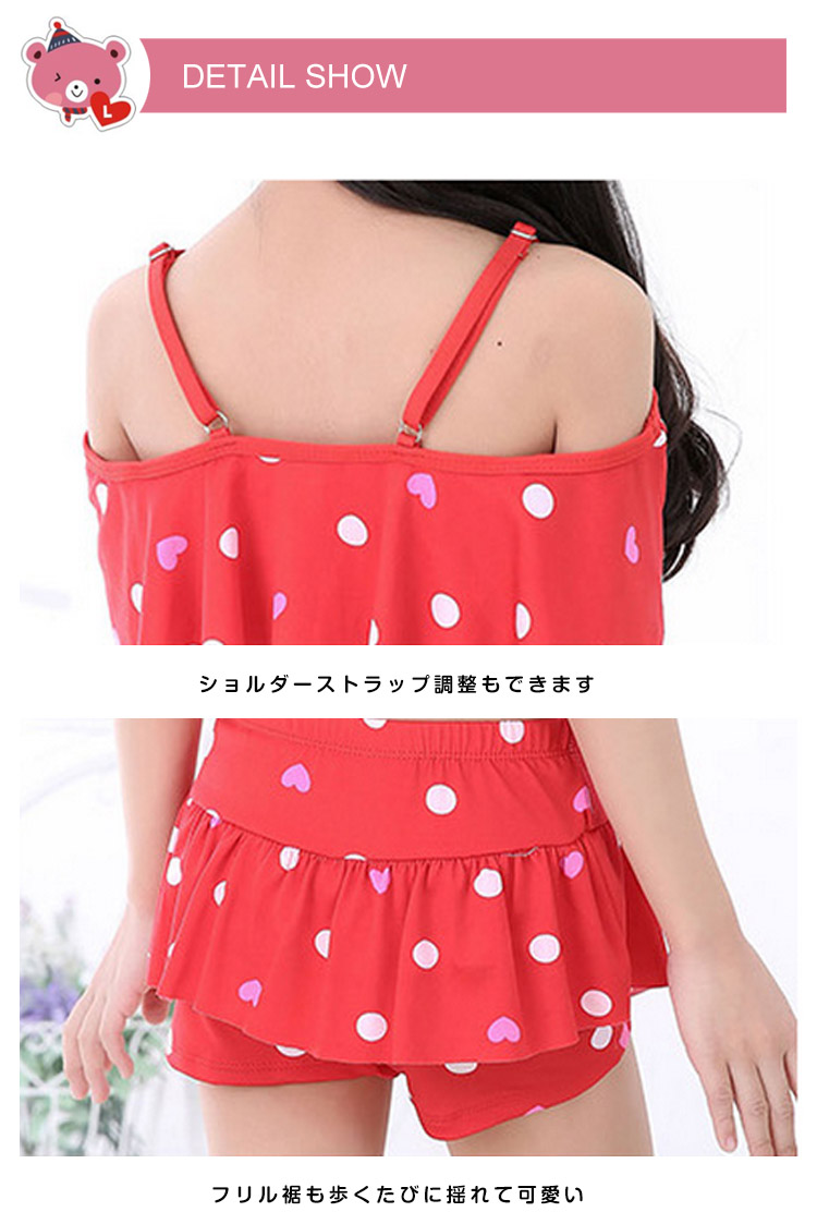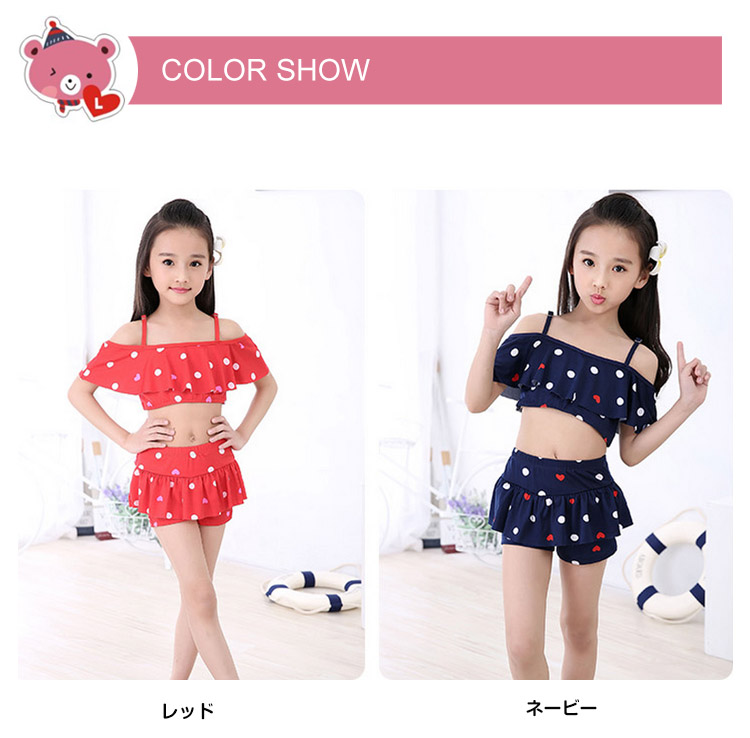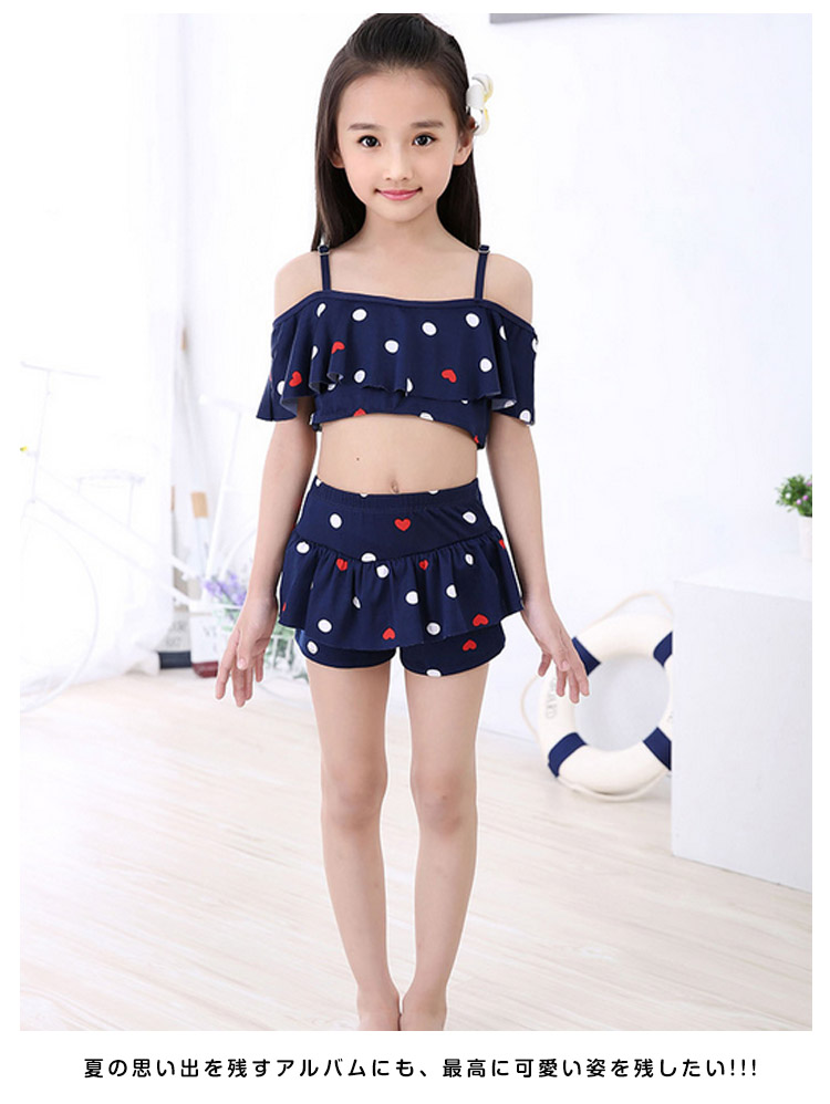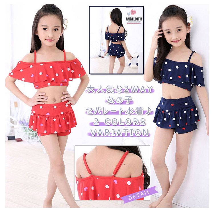 | 大人気な2way女の子セパレート水着♪トップス+パンツの2点セットです。可愛いわが子にはいつも可愛い姿でいてほしい!夏の思い出を残すアルバムにも、最高に可愛い姿を残したい!!!可愛い水着をお選び頂けるよう、ご用意致しました☆サイズも取り揃えておりますので、ご安心くださいネ♪ | |