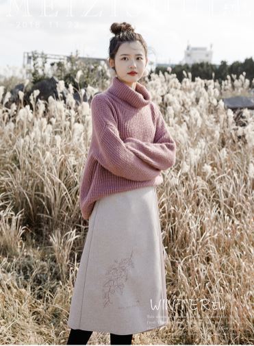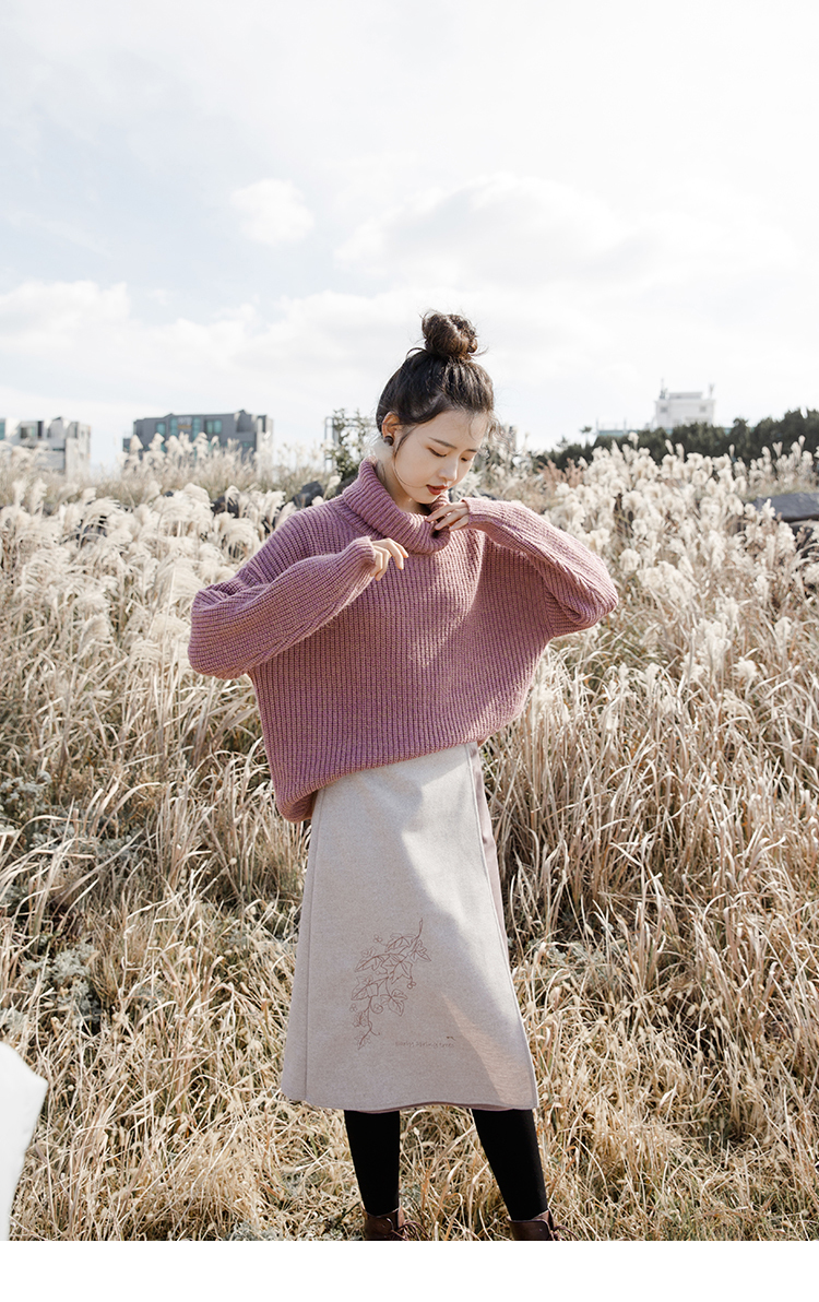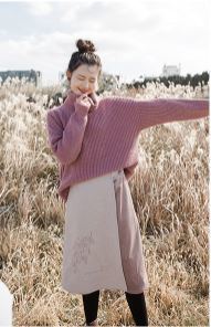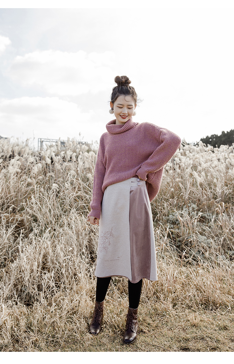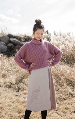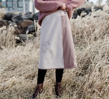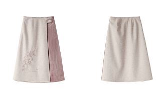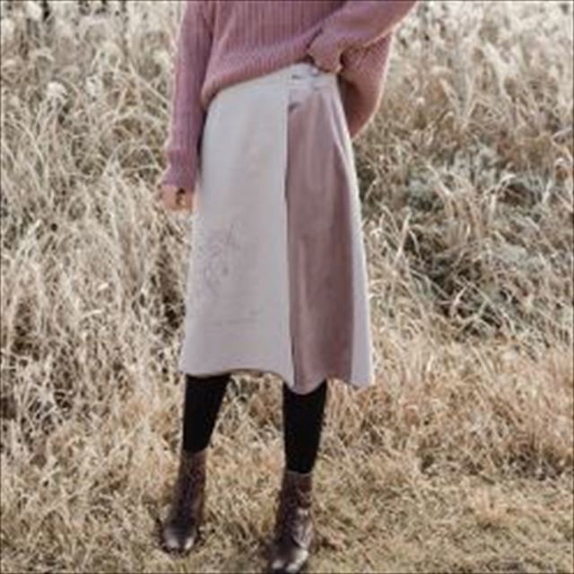 葉っぱ柄の刺繍がポイントのラップスカートです。
