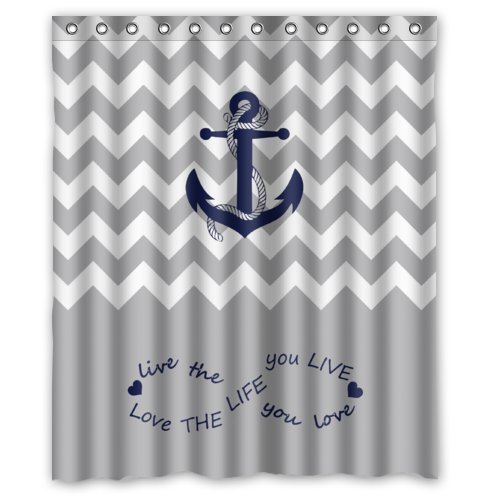60" x 72" Infinity Live the Life You Love, Love the Life You Live.Gray and White Chevron Zig Zag Pattern with Anchor navy Waterproof Bathroom Fabric Shower Curtain,Bathroom decor