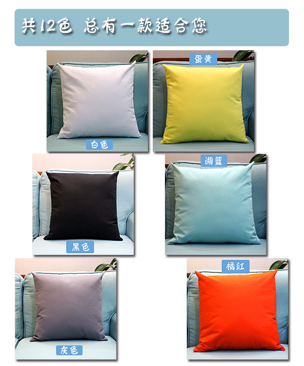 【Name】 Nordic cotton pure color pillowcase【Material】 cotton【Filled】 core 35G non-woven 500 grams PP cotton【Color】 12 color optional【Process】 active printing and dyeing【Size】 45X45 CM