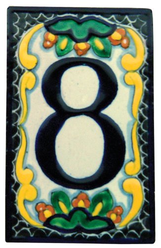 -. Feature : Hand painted Talavera ceramic numbers / Water resistant and weatherproof for outdoor use. / Offers your home a warm and elegant Mediterranean feel. / Height 5.125" Width: 3.125"