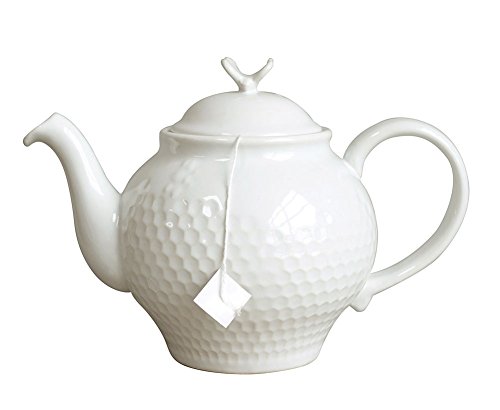 -. Title : Creative Co-op White Stoneware Honey Comb Teapot with Bee Finial, White