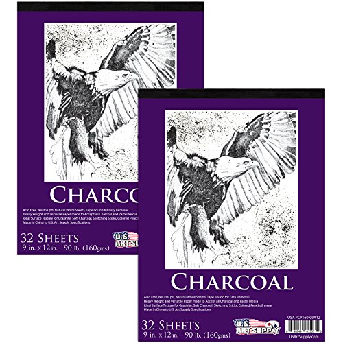 US Art Supply 9 in. x 12 in. Premium Heavy-Weight Charcoal Paper Pad, 160gsm, 90 Pound, 30 Sheets (Pack of 2)