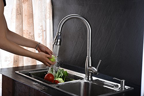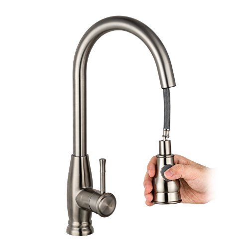 Kitchen Faucets, LiFu Stainless Steel Simplice Single Handle Pull-Down Sprayer Kitchen Faucet, Pull Out Kitchen Sink Faucet