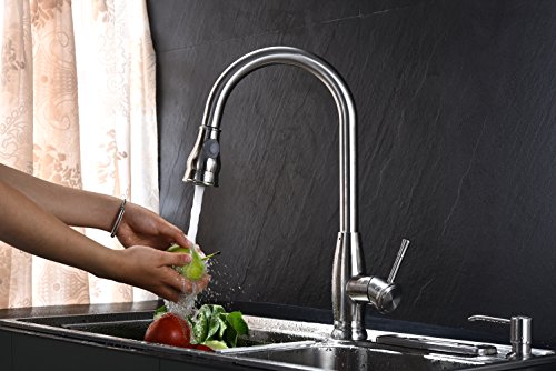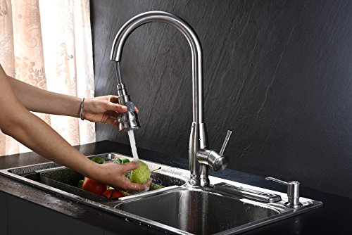 SOLID STAINLESS STEEL KITCHEN - Solid stainless steel construction for reliability and long lasting performance. High-arch goose neck spout and 360 degree rotation offers superior clearance for a