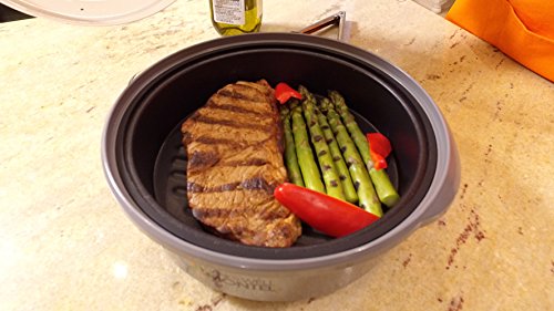 1.5-quart, non-stick, ceramic-coated grill pan cook's food perfectly at microwave speed