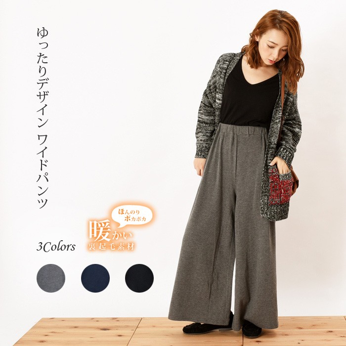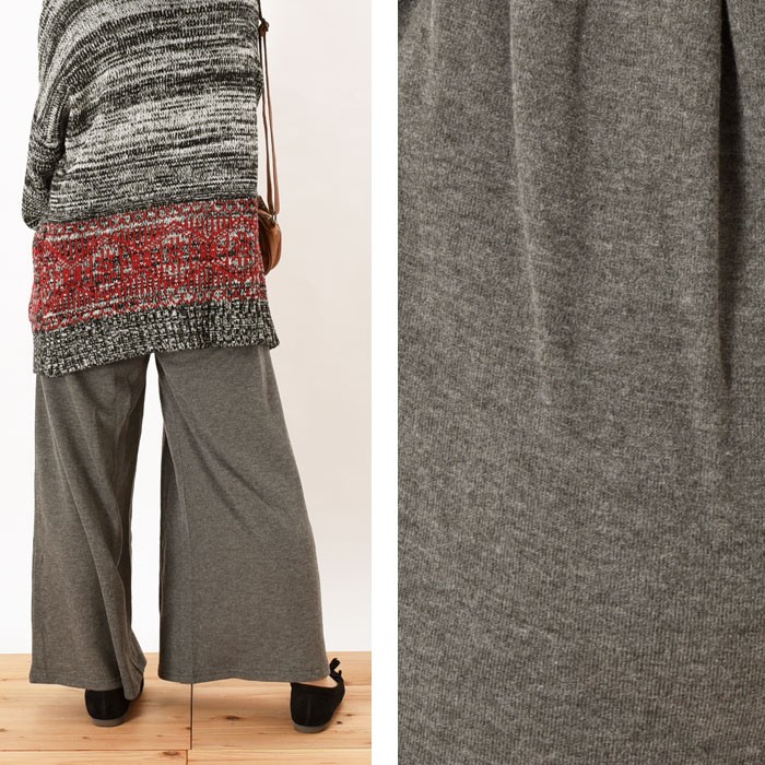 表面はふんわりとした触り心地、内側は起毛でふんわりあったかい、これからの時期にピッタリのワイドパンツです。