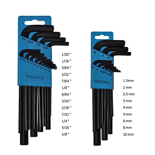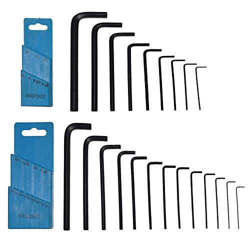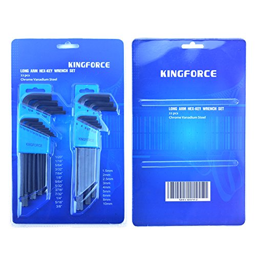 KINGFORCE 22 PCS Long Arm Hex Key/Allen Wrench Set,Hex End,Cr-V material,Inch/Metric