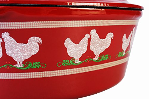 ★ Dimension L 14.4" x W 8.5" x H 6.3", dual handles provide firm grip in carrying; Self-basting domed heavy lid keeps moisture and pressure while cooking