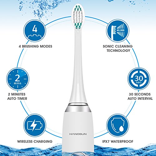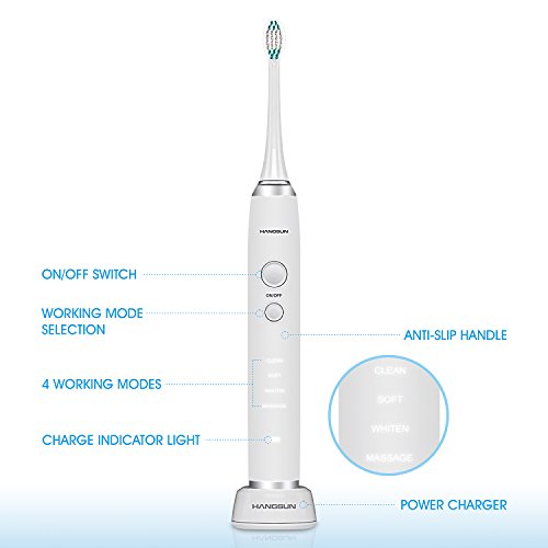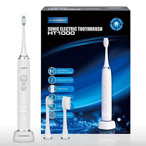 Hangsun Sonic Electric Toothbrush HT1000 Rechargeable with 4 Brush Modes and 3 Replacement Heads