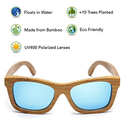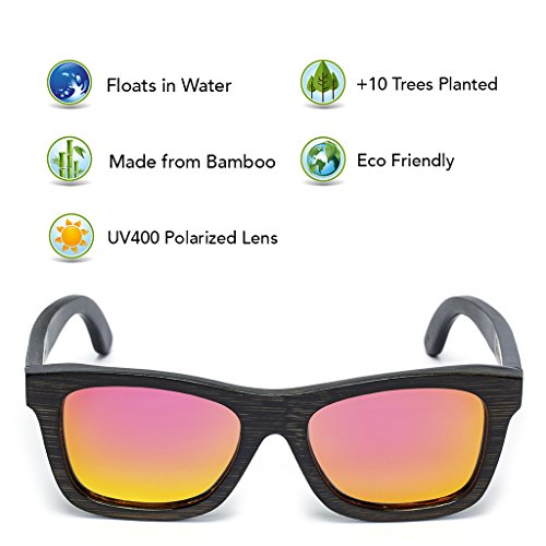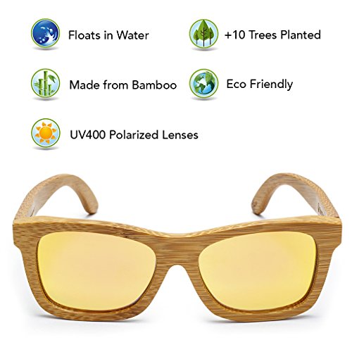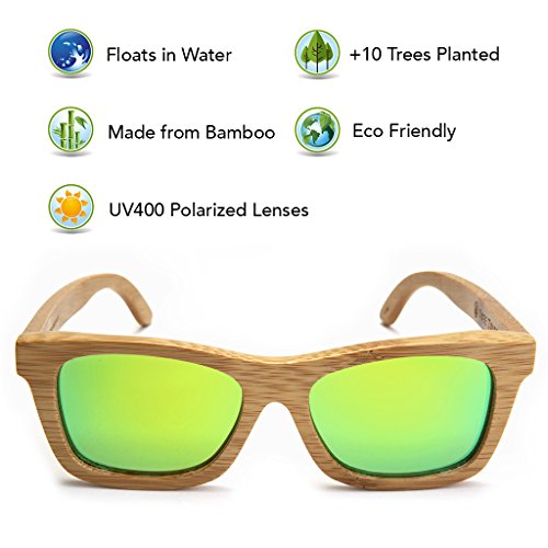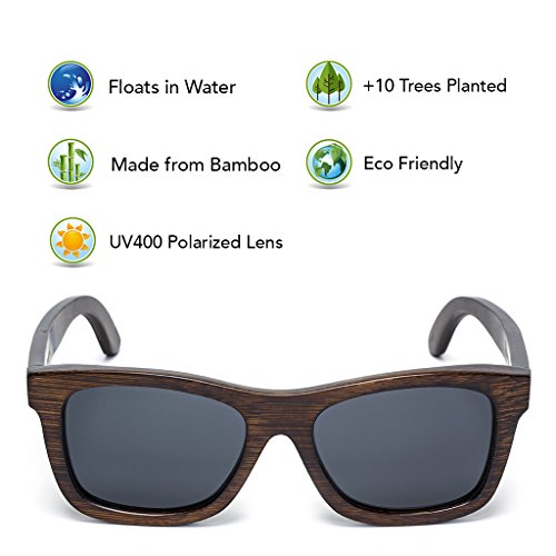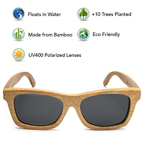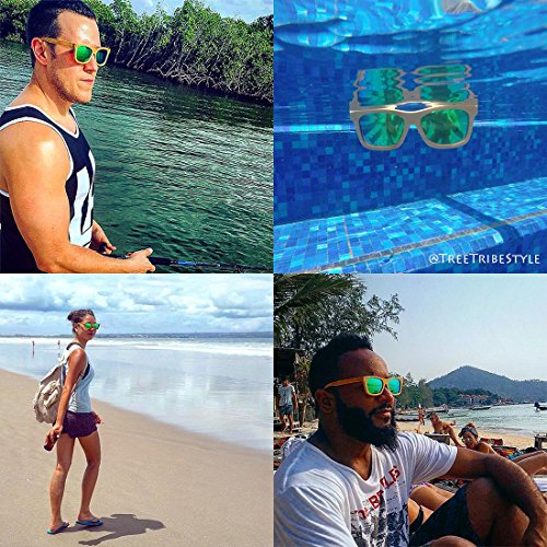 TREE TRIBE MISSION Tree Tribe is a lifestyle brand that represents the Earth. Our mission is to contribute to global positive impact projects, while making cool natural styles. For every pair of sunglasses sold, we plant 10 trees! Trees produce oxygen, help the environment, provide homes for wildlife, and boost the health of the planet. On a local level, the trees we plant provide food, shelter, and economy to local communities. HAND CRAFTED SUNGLASSES Each pair is made from actual bamboo. Bamboo is lightweight, strong, and has a cool wood grain appearance. We use quality polarized lenses and stainless steel flex hinges. The hinges easily hyper-extend for a comfortable fit. BAMBOO IS AWESOME Bamboo is a natural eco friendly sustainable material. It grows much faster than trees, requires less water to grow, and can be reharvested over and over again. Bamboo is the fastest growing plant in the world, and it's toughness allows it to grow organically. Bamboo sunnies add unique style points with a natural vibe. GREAT FOR WATER AND OUTDOOR SPORTS These glasses float in water! Because they're made from organic bamboo, you can drop em in the lake and they float right on top of the surface. A thin layer of waterproofing ensures they don't warp or rot. The polarized lenses prevent glare and haze for a clear view. Perfect for sunny days! They're great for kayaking, canoeing, stand up paddle boarding, fishing, golfing, hanging at the lake, or just chillin at the pool. Wear em surfing if you want... no more lost sunglasses at the bottom of the ocean. 100% SATISFACTION GUARANTEE We're serious about our quality - If you don't love our sunglasses, we'll gladly refund you. We offer a 100% money back guarantee on all purchases. INCLUDES - Authentic Tree Tribe Bamboo Sunglasses - Microfiber Pouch - Bamboo Storage Case Check our full store at amazon.com/shops/treetribe 0 |
