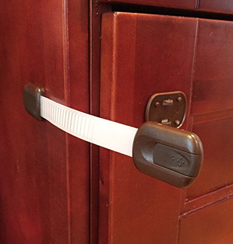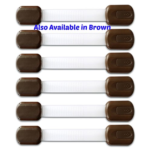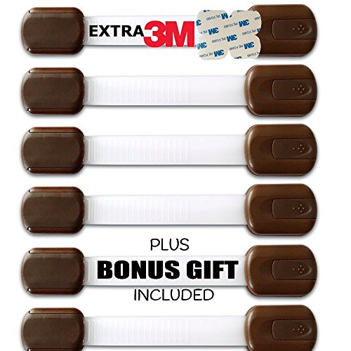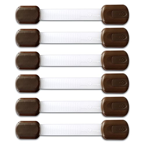 BabyKeeps Adjustable Child Safety Locks - Latches to Baby Proof Cabinets, Drawers, Fridge, Oven, Dishwasher, Toilet Seat - No Tools or Drilling - BONUS: Reusable With EXTRA 3M Adhesive Included - Childproof Your Home in Style - Adorable Box Ideal For Baby Shower Gift - Chocolate Brown - 6 Pack
