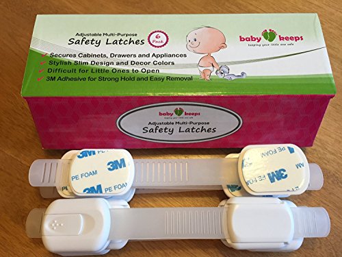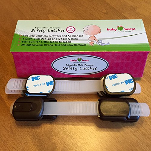 BabyKeeps Adjustable Child Safety Locks - Latches to Baby Proof Cabinets, Drawers, Fridge, Oven, Dishwasher, Toilet Seat - Keep Your Baby and Toddler Safe - Childproof Your Home in Style - Soft White - 6 Pack