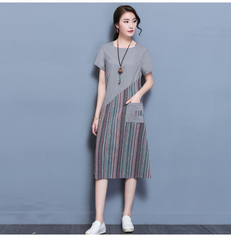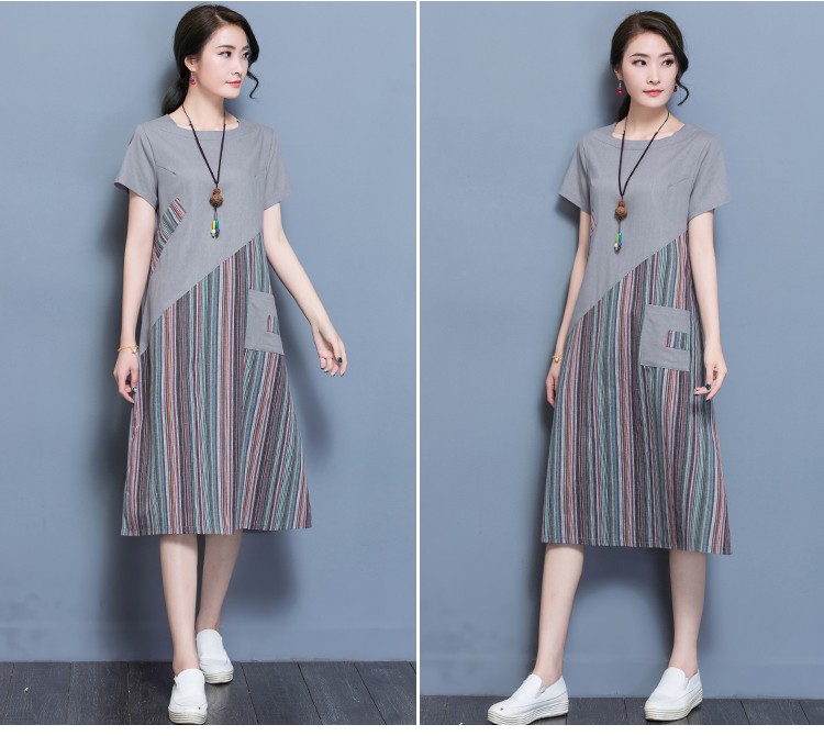 ワンピース 膝丈 レディース 大きいサイズ ワンピース 結婚式 無地 リネン ワンピース リゾート 半袖 森ガール 2018春夏新作 ワンピース 大きいサイズ レディース リネン ワンピース商品詳細素材:リネン袖丈:半袖季節:春夏秋柄:ストライプ柄ライン:フレアカラー:シルバー、ダークブルー産地:中国サイズ参照表M 後ろ着丈103cm 肩幅39cm 袖丈16cm 前着丈103cm ウエスト94cm バスト94cmL 後ろ着丈104cm 肩幅40cm 袖丈17cm 前着丈104cm ウエスト98cm バスト98cm XL 後ろ着丈105cm 肩幅41cm 袖丈18cm 前着丈105cm ウエスト102cm バスト102cm2XL 後ろ着丈106cm 肩幅42cm 袖丈19cm 前着丈106cm ウエスト106cm バスト106cmご注意:個人採寸のため、1~3cmの誤差は正常範囲内となりますが、ご了承ください。ワンピース 膝丈 レディース 大きいサイズ ワンピース 結婚式 花柄 リネン ワンピース リゾート 半袖 森ガール 2018春夏新作 ワンピース 大きいサイズ レディース リネン ワンピース