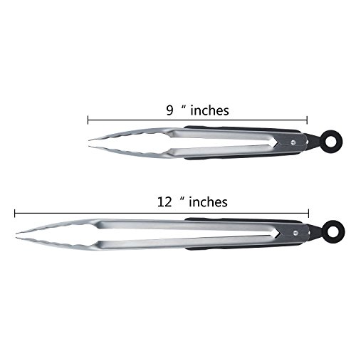 Stainless-steel Locking Kitchen Tongs,Tongji 9,and 12 Inch Premium Sturdy Grips,Set of 2
