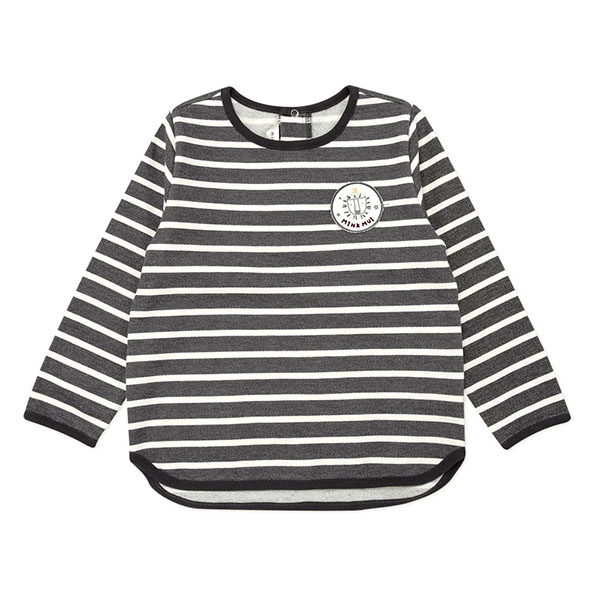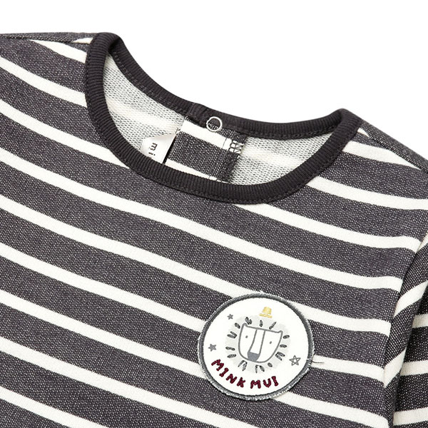 미니쭈리 두께감의 변형 스트라이프 티셔츠로 큐트한 라이온 와펜으로 포인트를 주었습니다.