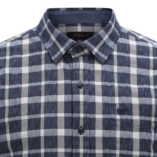 - 내츄럴한 체크 패턴 디자인의 남성 셔츠.