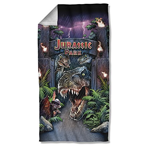 This Jurassic Park 30" x 60" beach towel is an officially licensed product and features our cool Welcome To The Park design. This design is printed on one side of a soft 100% polyester fleece beach towel. This item is hand-printed in the USA using a dye sublimation printing process that creates slight imperfections over seams and/or folds, which makes each item unique.