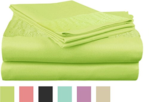 RAMPAGE 4 Inch Lace Sheet Set, Queen, Green