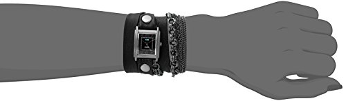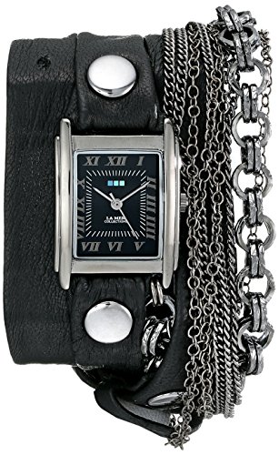 La Mer Collections Women's LMMULTI7000 Carerra Stainless Steel Watch with Black Leather Wraparound Band