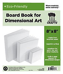Studio : Eco Green Crafts Publisher : Eco Green Crafts Binding : Misc. Product Description Eco Green Crafts' 8-Inch by 8-Inch board book is a super-quality, hand-made book made for dimensional design. The pages have small spacers between them that allow the book to accommodate embellishments and other 3-D effects better than traditional board books. The surface is excellent for stamp inks, paints, and most other mediums. Each book is made from recycled paper. 0