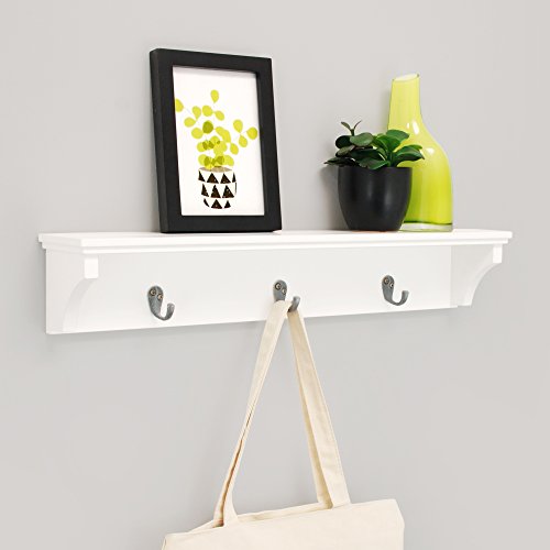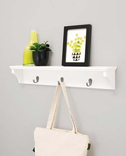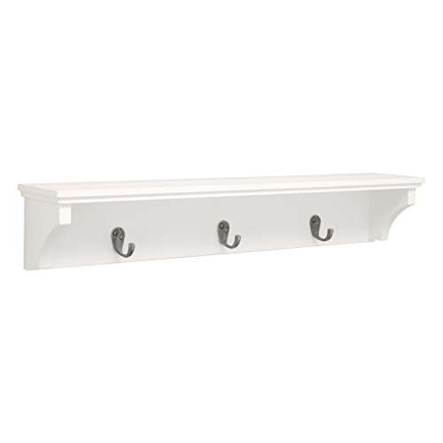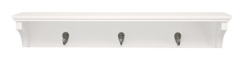 Kiera Grace Finley Wall Shelf with 3 Metal Hooks, 24-Inch by 4.25-Inch, White