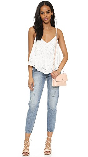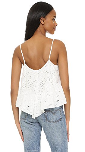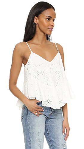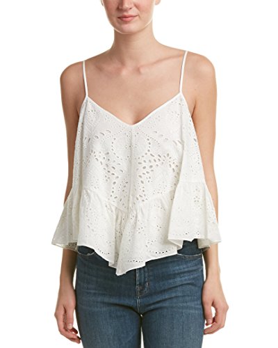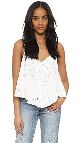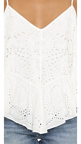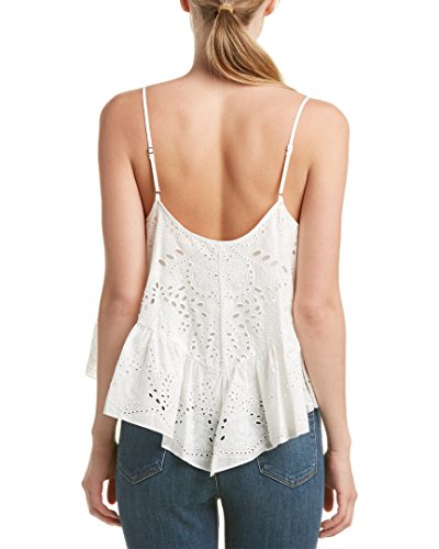 Product DescriptionThis season's slinky tank gets a bohemian luxe twist with eyelet embroidery and an asymmetrical, ruffled hemline.0