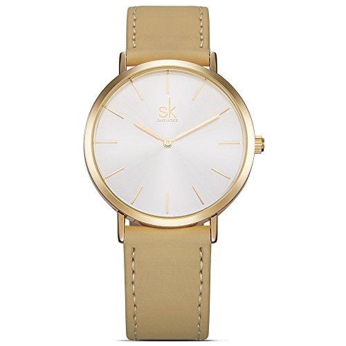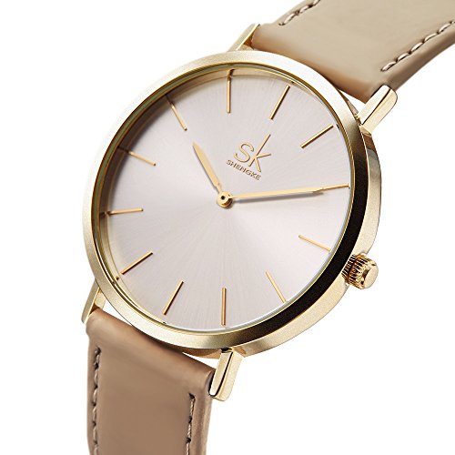 SHENGKE SK Fashion Simple Style Casual Leather Women Quartz Wrist Watches