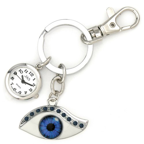 JAS Unisex Novelty Belt Fob/Keychain Watch Blue Eye Silver Tone