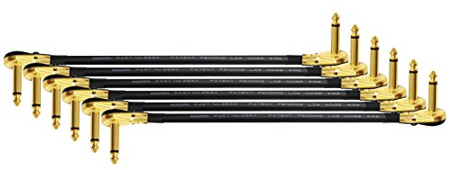 6 Units - Mogami 2524 - 12 Inch - Guitar Bass Effects Instrument, S-Shaped Patch Cable with Premium Gold Plated ¼ inch (6.35mm) Low-Profile, Right Angled Pancake type Connectors