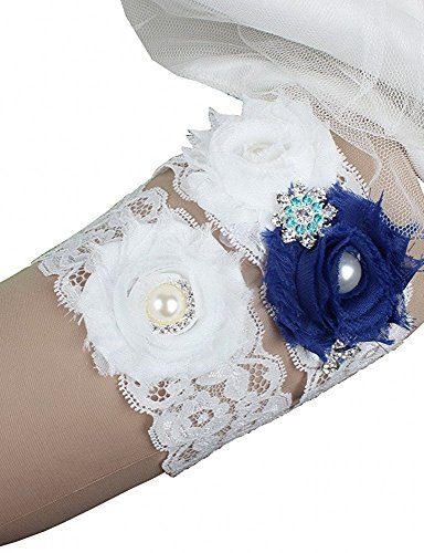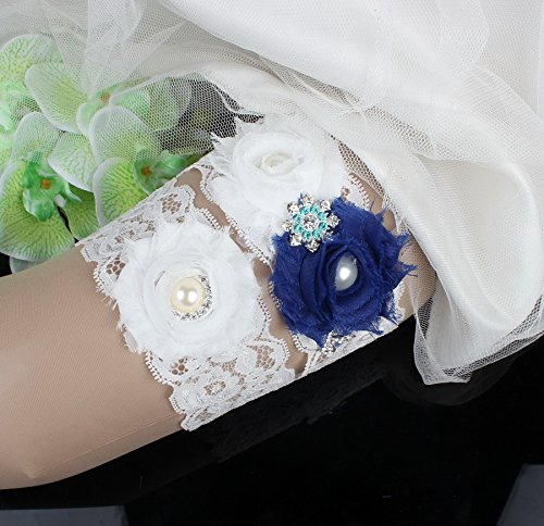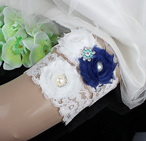 Prettybabyonline Bridal Women's Floral Bridal Leg Garters Wedding Garters (XXL, Dark Blue)